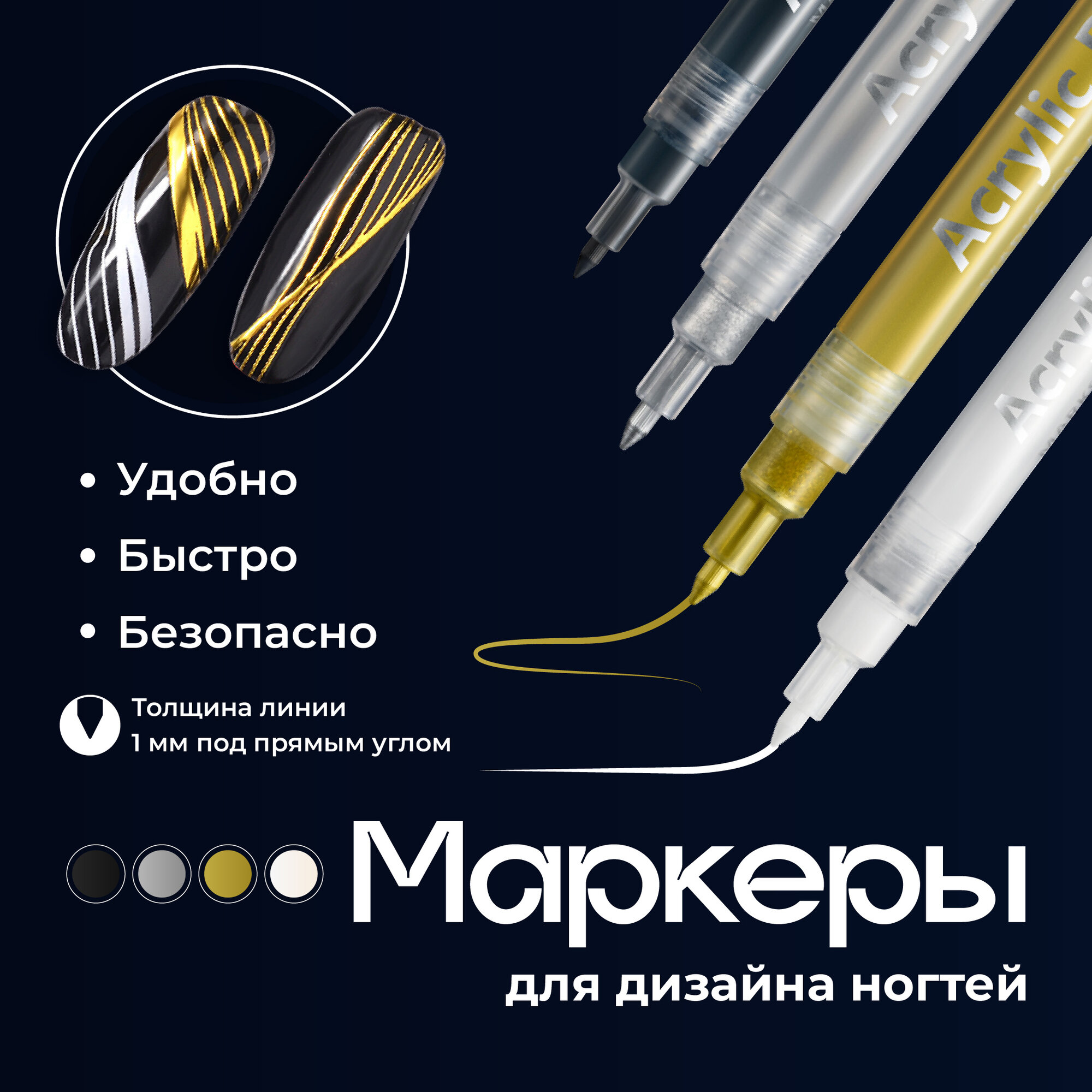 Акриловые маркеры для дизайна ногтей и маникюра REVOLUT, набор 4 шт информация: