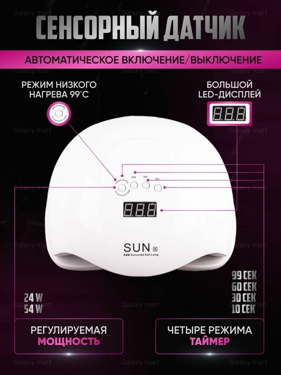 SUN X 54 W Лампа для сушки маникюра ногтей. Профессиональная гибридная UV LED. Лампа для гель лака. Лампа для ногтей информация:
