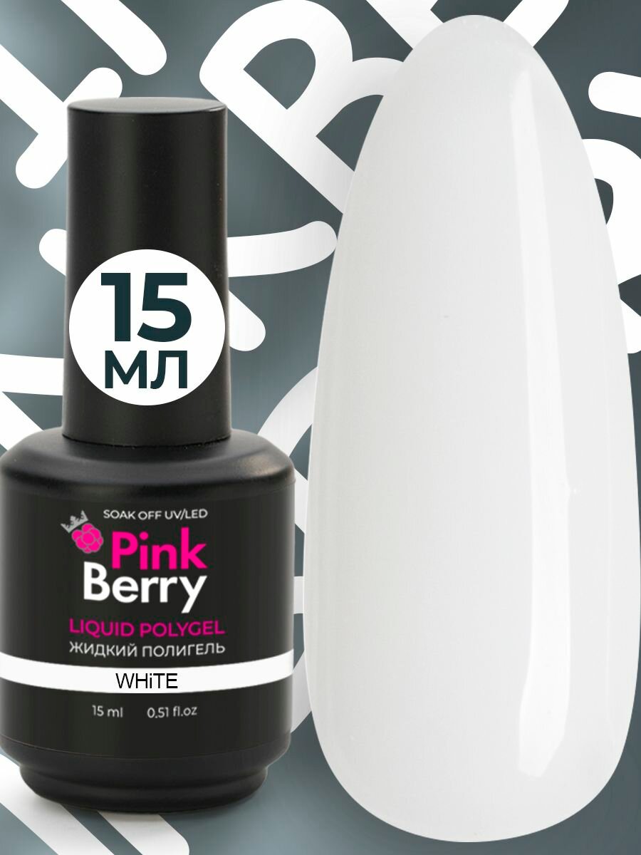 Жидкий полигель для укрепления и наращивания ногтей от Pinkberry молочный белый, 15мл 374 ₽
