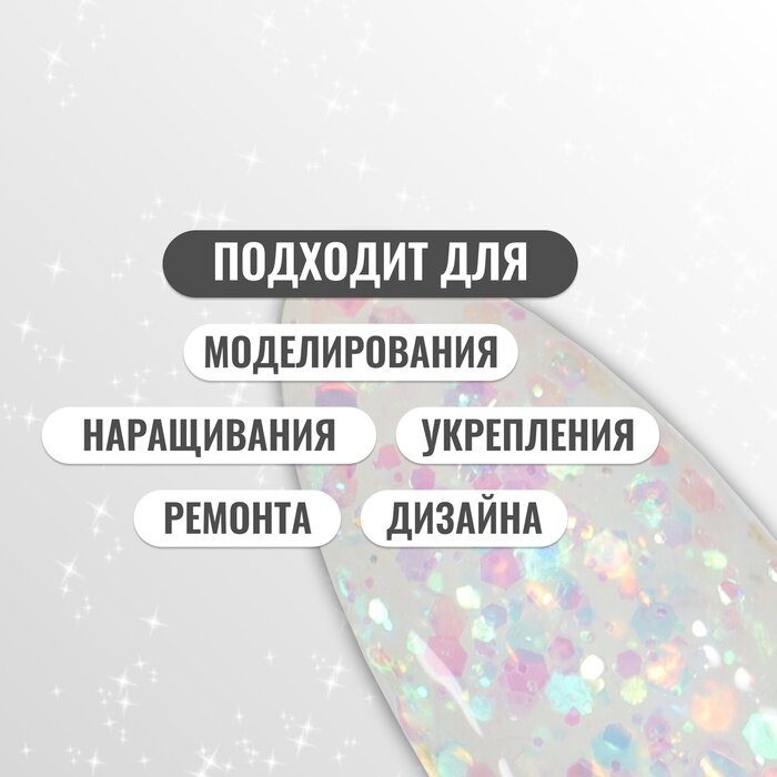 10 цен на Полигель для наращивания, с блёстками, 3-х фазный, 15 мл, LED/UV, цвет белый, 9896324