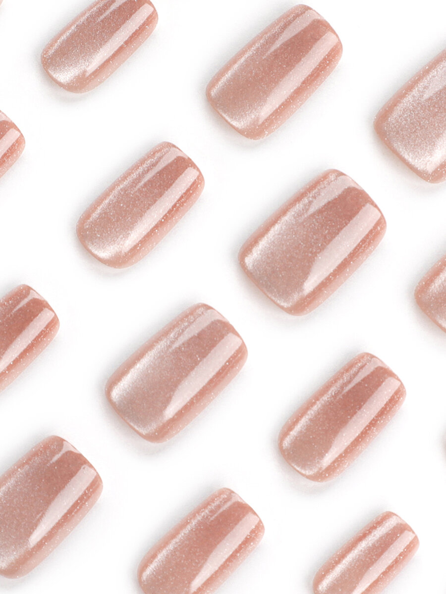 10 цен на Накладные ногти короткие бежевые кошачий глаз