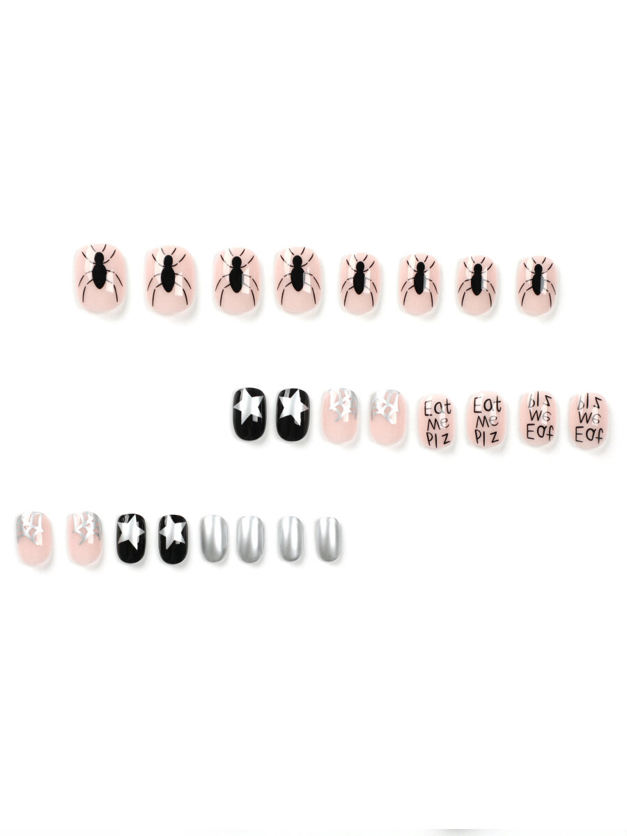 Накладные ногти короткие черные с дизайном корейские y2k 372 ₽