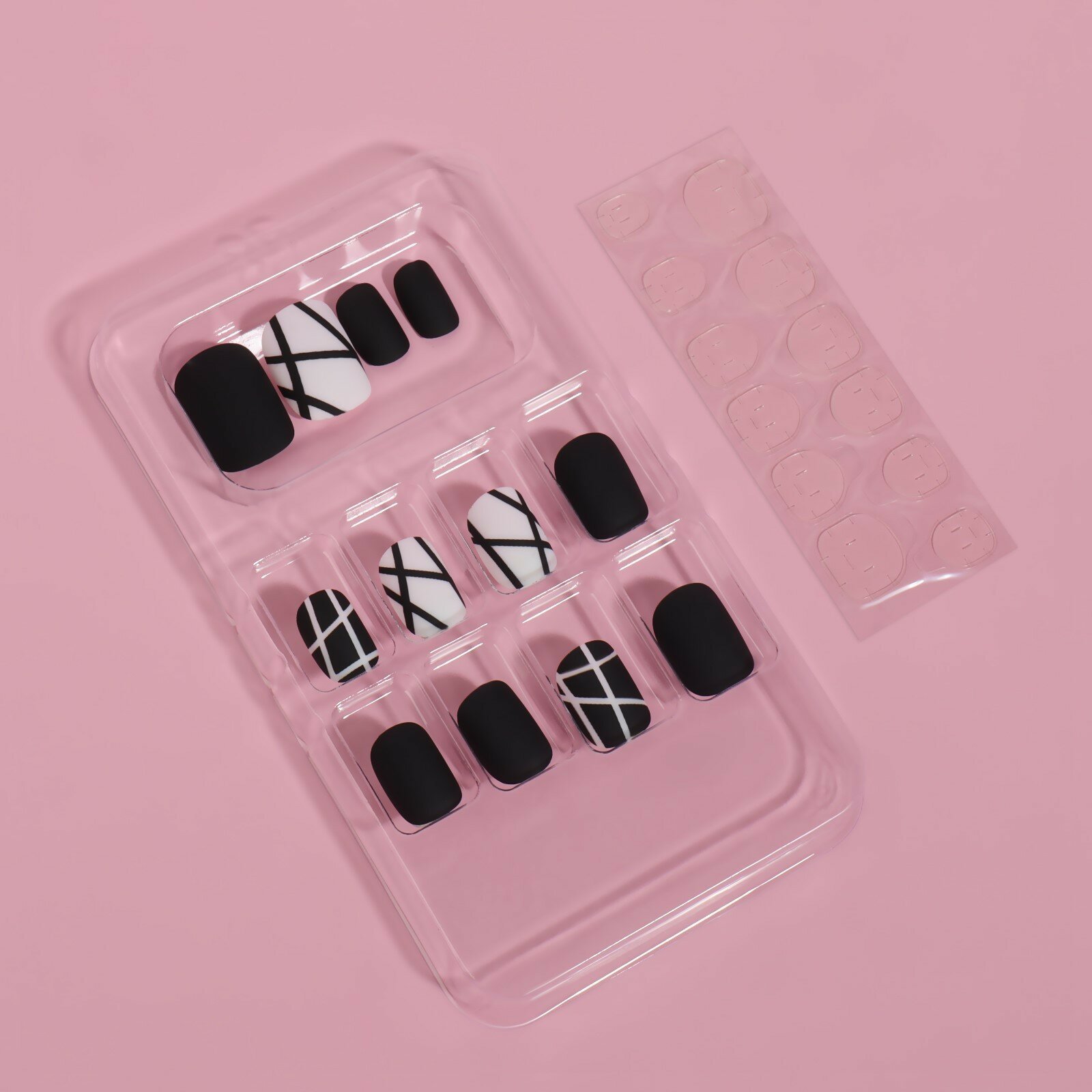 Накладные ногти "Black", 12 шт, с клеевыми пластинами, форма мягкий квадрат, цвет чёрный/белый информация: