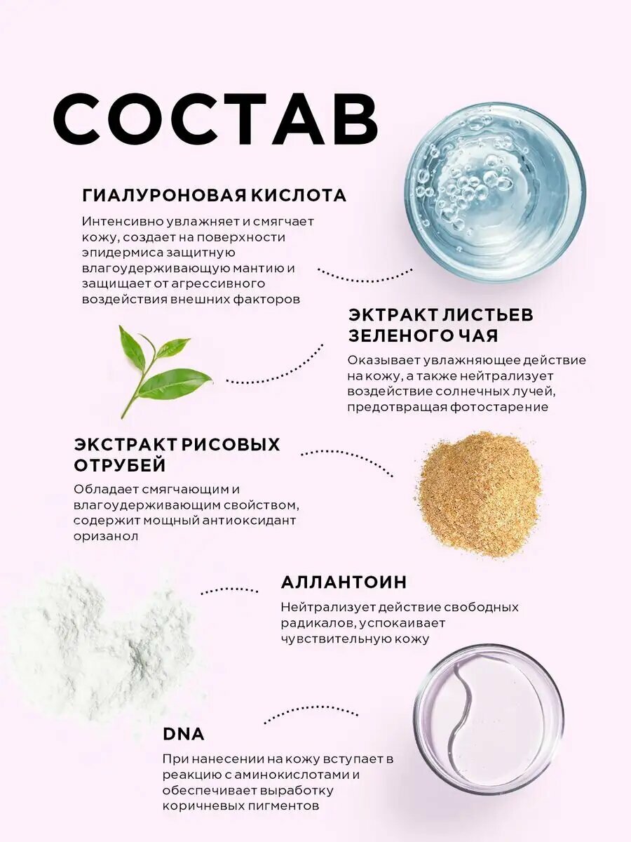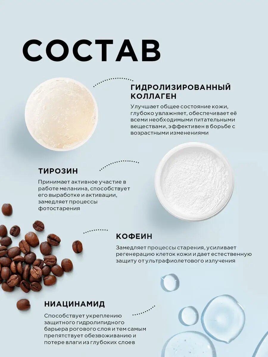 | Активный ингредиент | аллантоин / витамин B3 (ниацинамид) / гиалуроновая кислота / кофеин / тирозин |