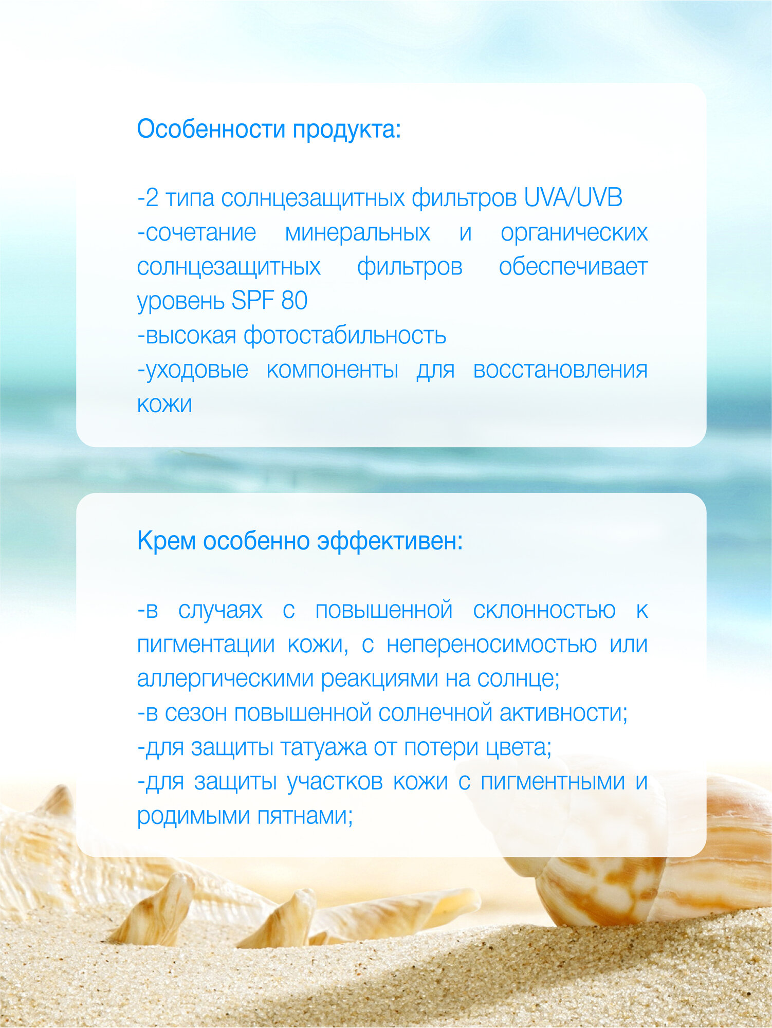 | Эффект | защита от солнечных ожогов / защита от фотостарения / увлажнение |