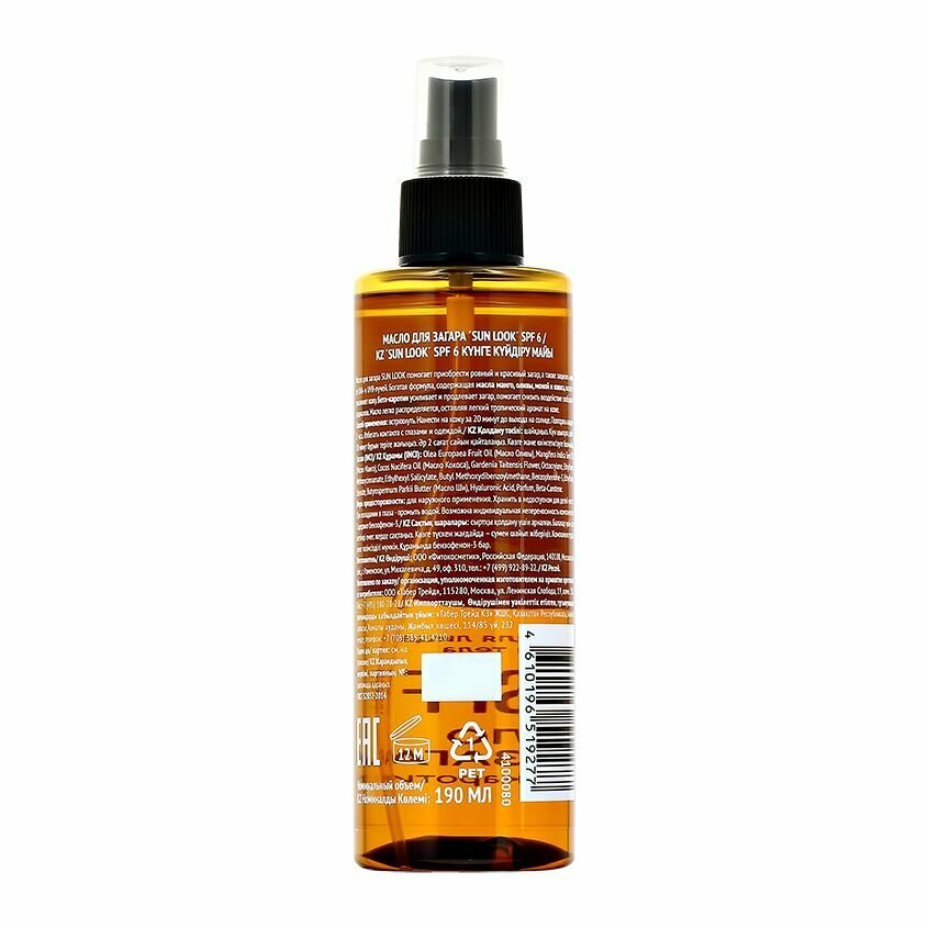 Масло для загара SUN LOOK SPF-6 190 мл информация:
