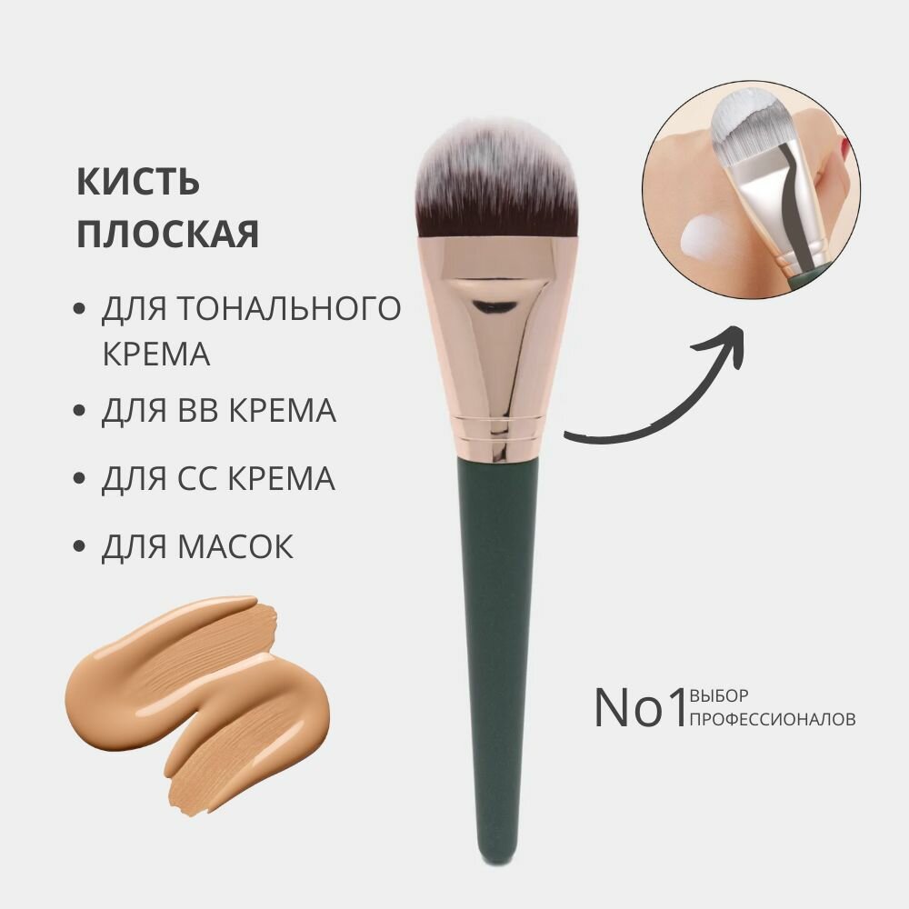 Профессиональная плоская кисть для нанесения макияжа лица и тональных средств, пудры, румян, теней и основы (черный) 325 ₽