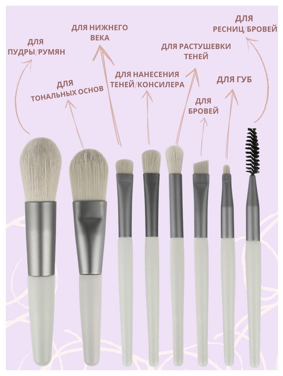 Кисти для макияжа / Кисть косметическая / Набор из 8 кистей / Набор кистей для макияжа / Кисть для глаз, бровей, теней, серый информация: