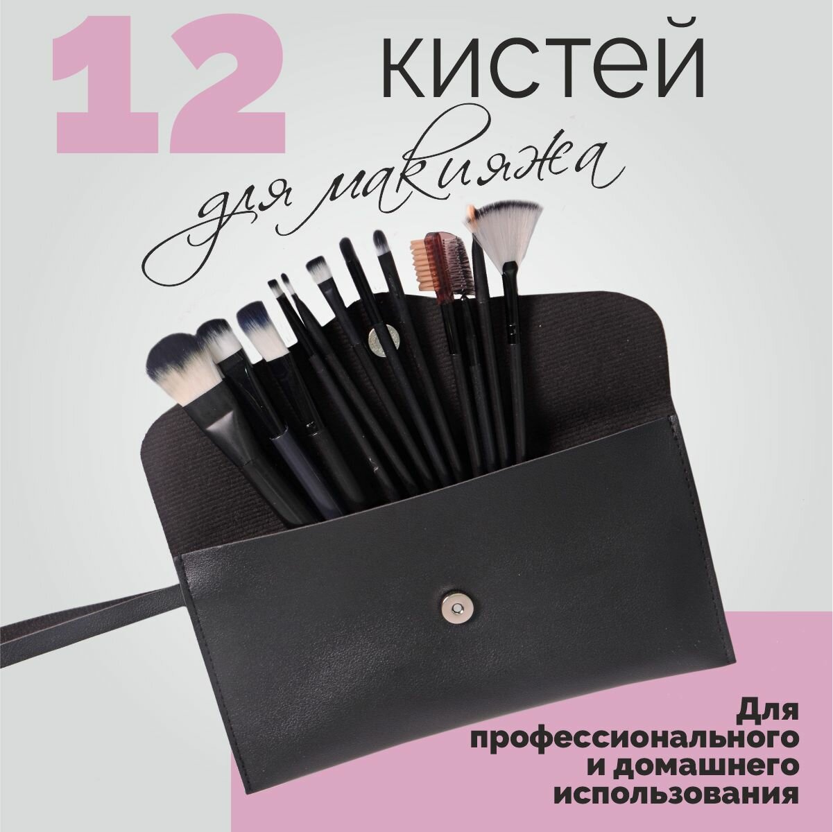 Кисти для макияжа, набор из 12 кистей, чехол в комплекте информация: