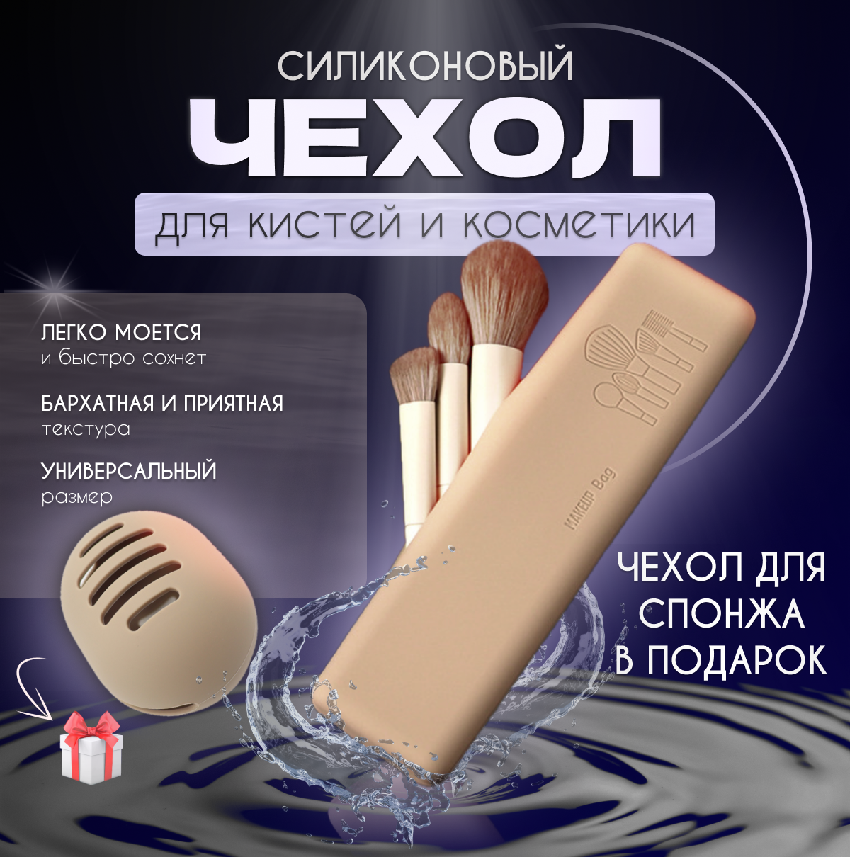 Чехол для кистей для макияжа и спонжа силиконовый футляр органайзер информация: