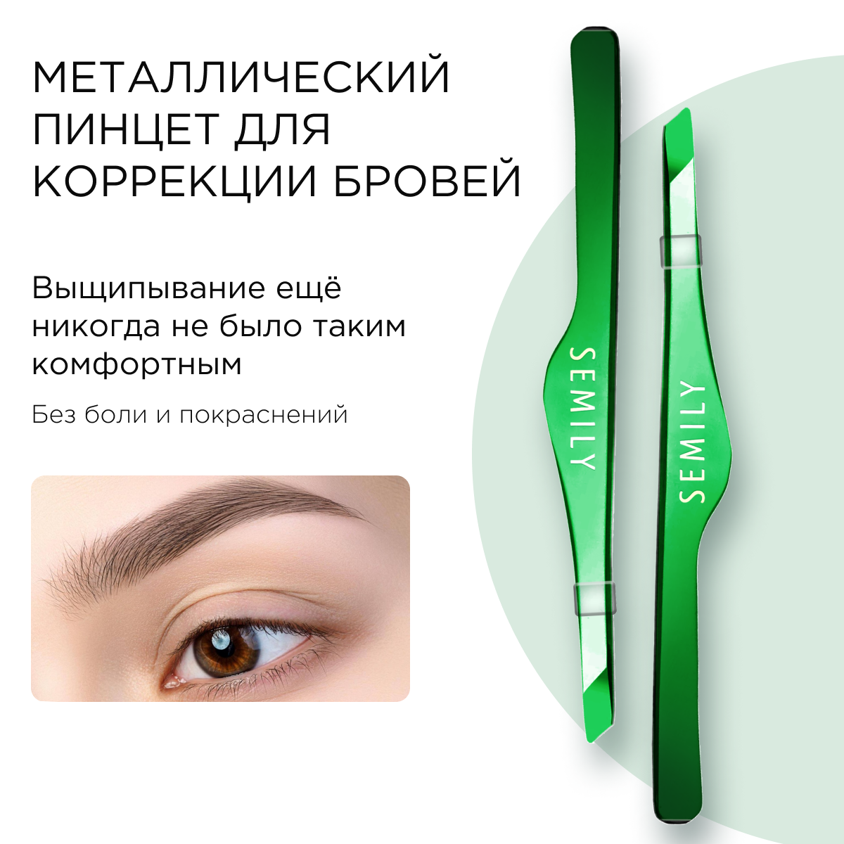 Отзывы на Профессиональный пинцет для бровей Semily, цвет зелёный 9,5 см