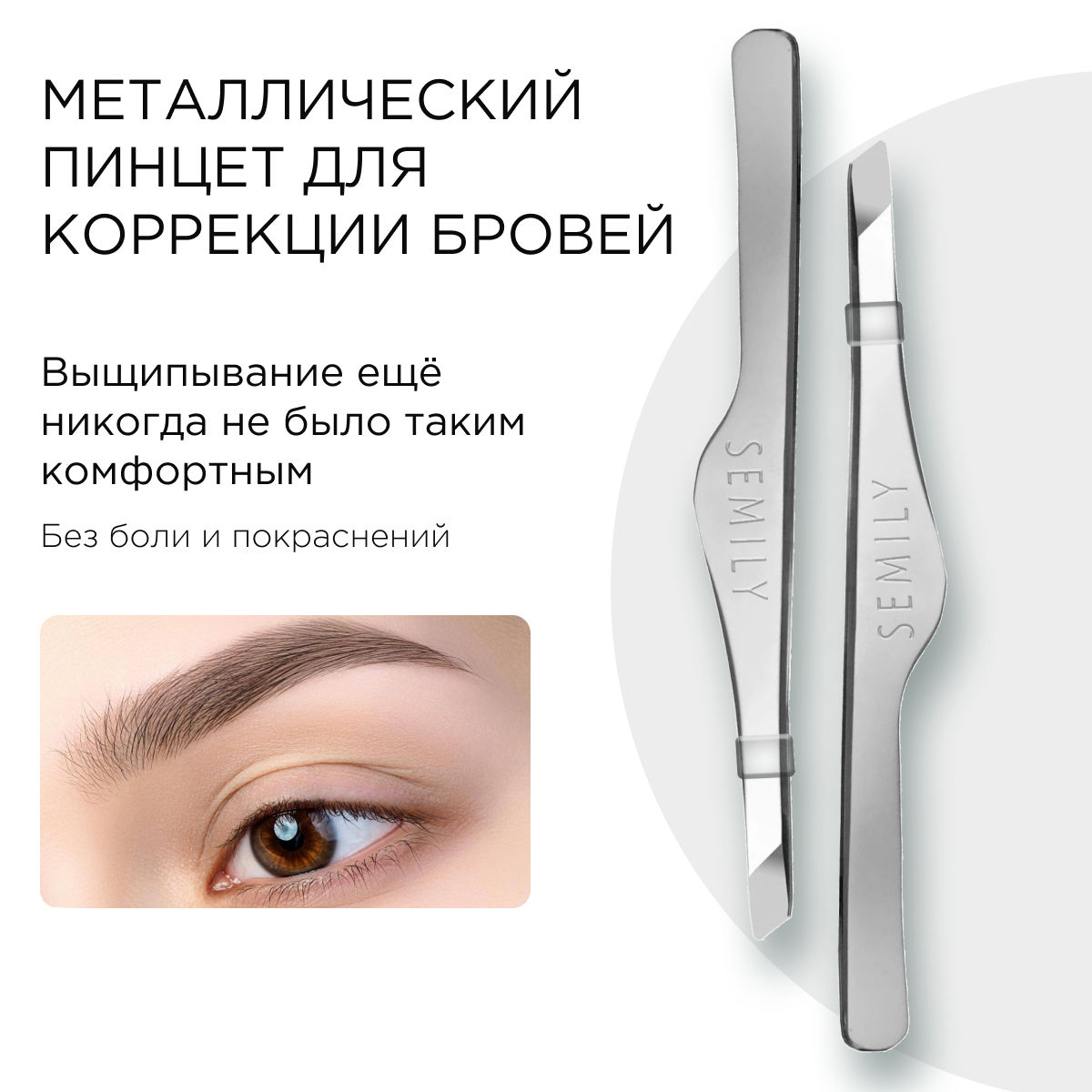 Профессиональный пинцет для бровей Semily, цвет металл 9,5 см информация: