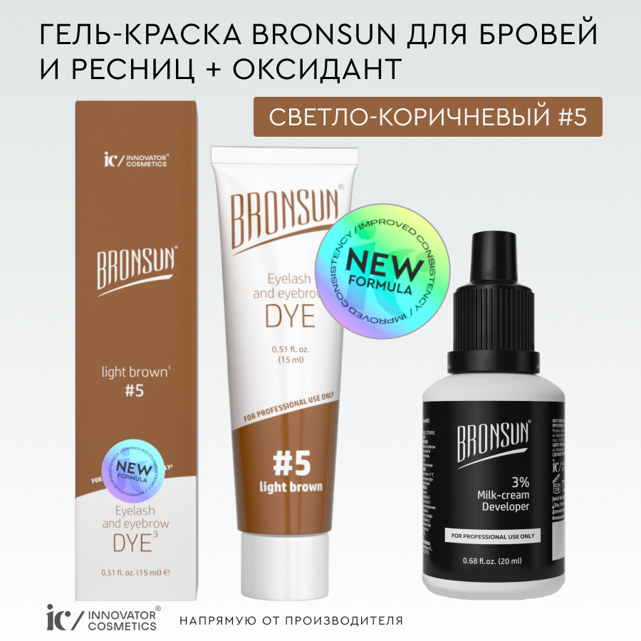 Комплект BRONSUN #5, краска для ресниц и бровей, цвет светло-коричневый, 15 мл + оксидант-молочко, 20 мл информация: