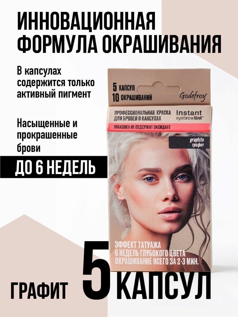 Отзывы на Godefroy Eyebrow Tint Graphite 2 Набора профес. краски для бровей по 5 капсул (графит)