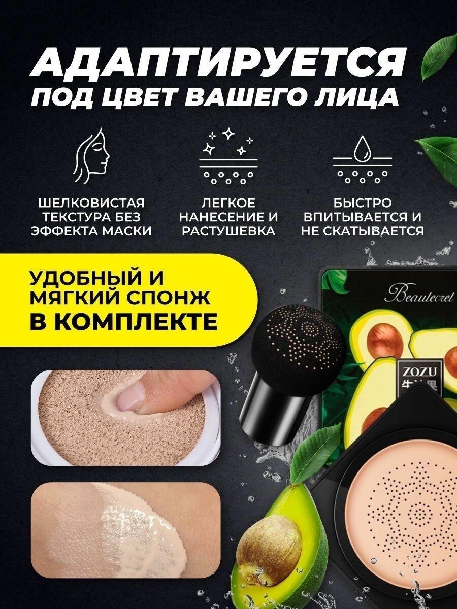 10 цен на Кушон - тональный крем для лица с экстрактом авокадо ZOZU / корейская косметика