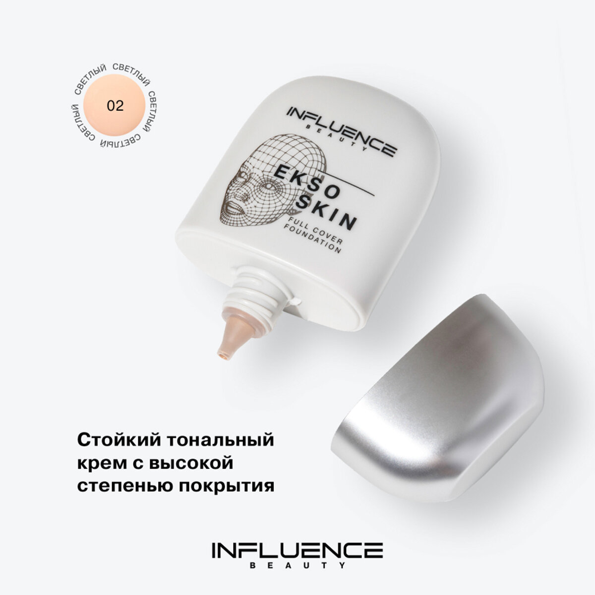 Тональная основа Influence Beauty с высокой степенью покрытия Ekso Skin, тон 02 light / светлый информация:
