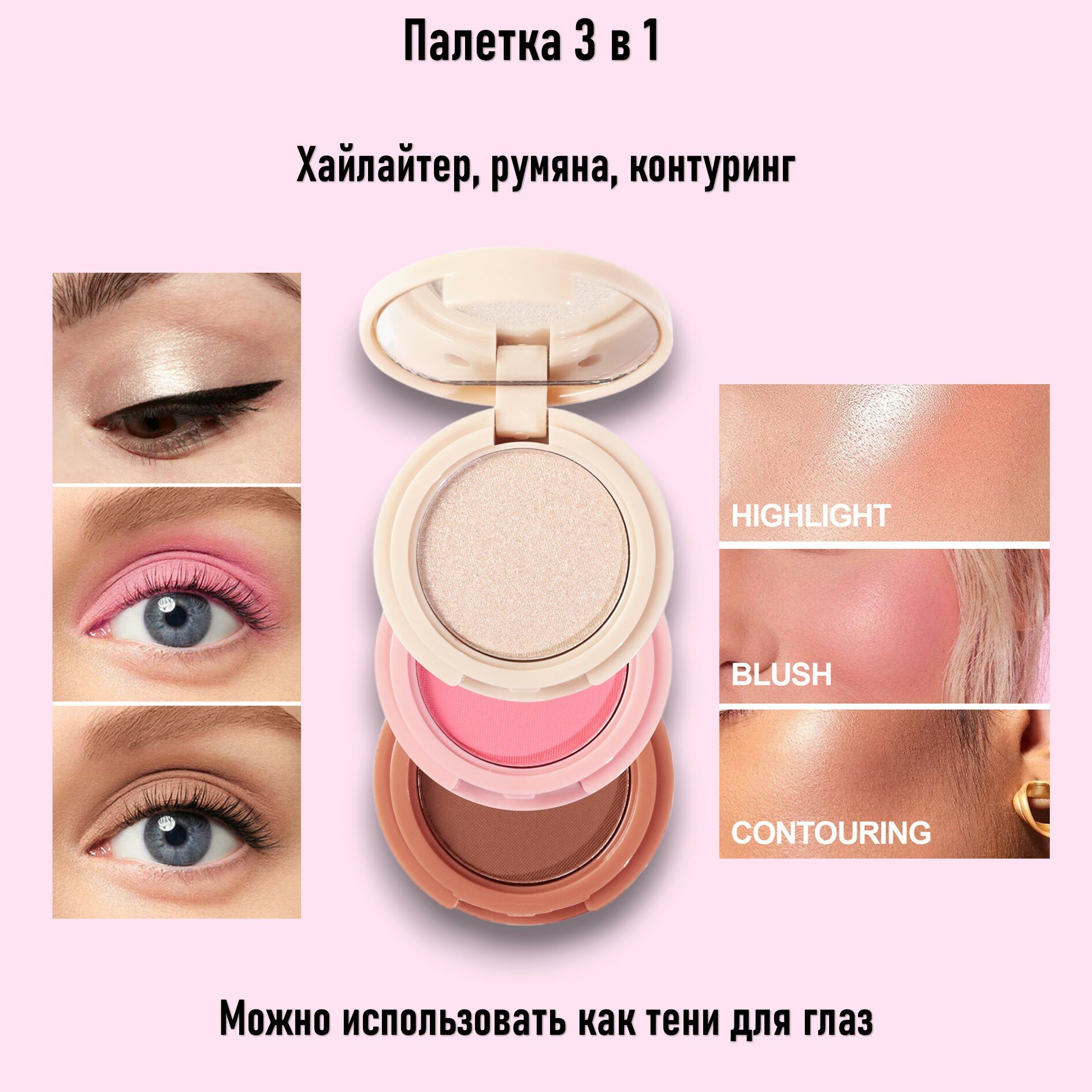 10 цен на Палетка для контуринга 3 в 1 хайлайтер, румяна, контуринг Тон № 1
