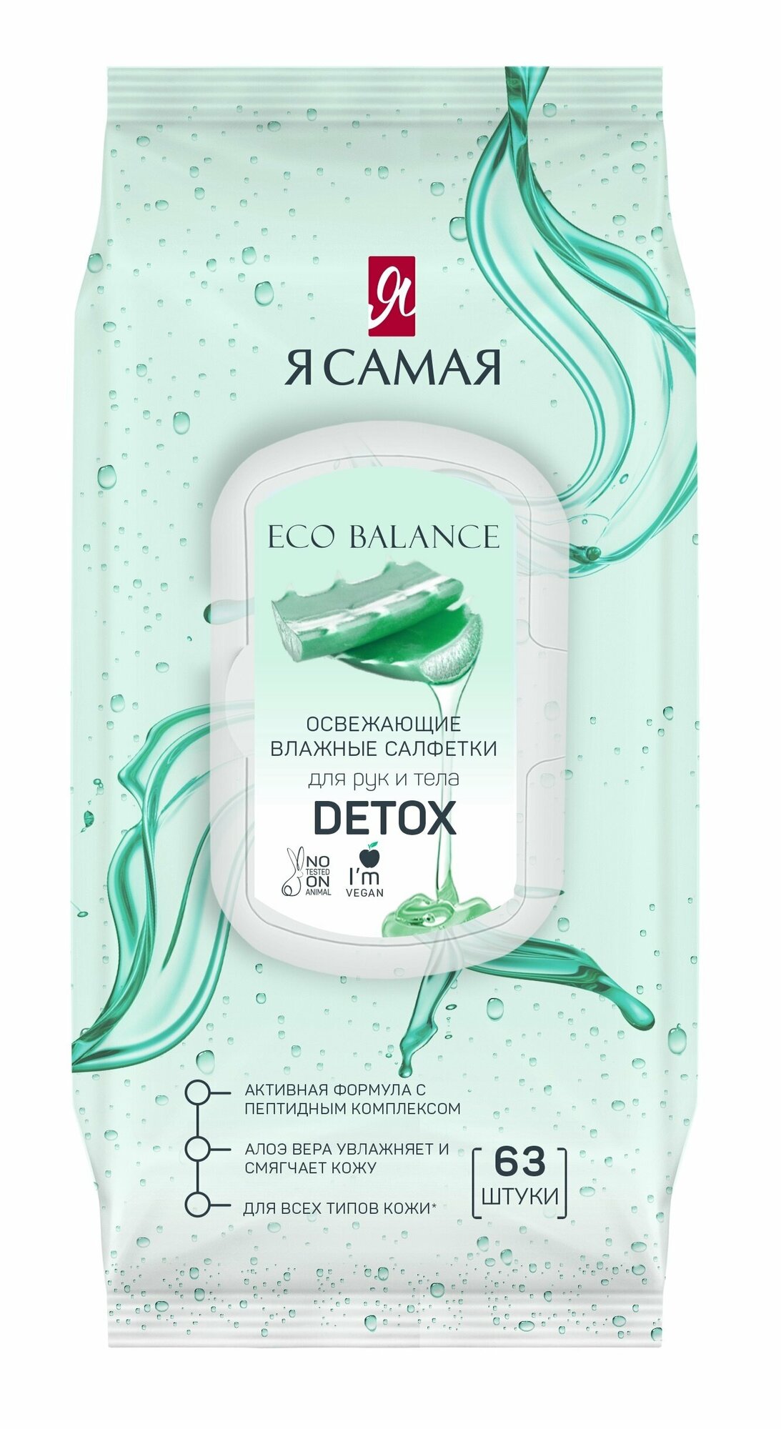 Салфетки влажные Я самая освежающие Detox big-pack с крышкой 63 шт информация: