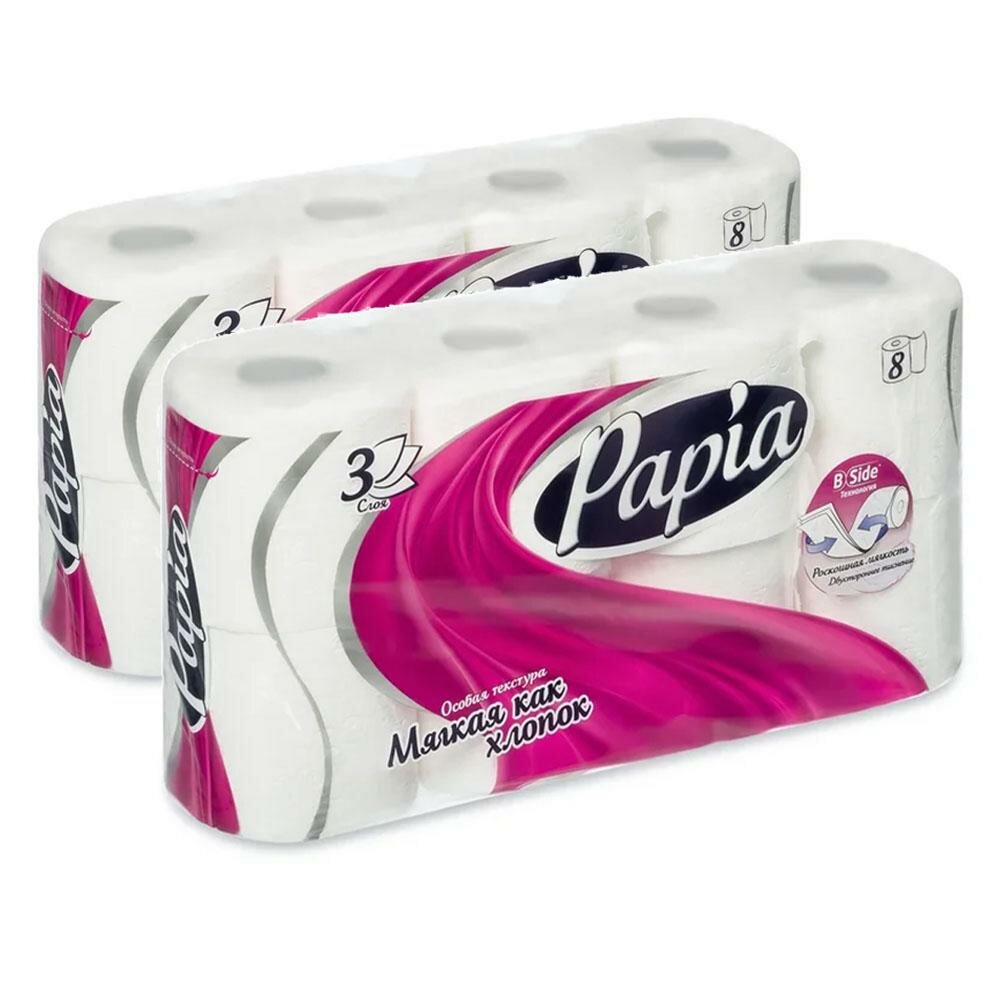 10 цен на Туалетная бумага Papia Белая 3сл/8рул набор 2уп