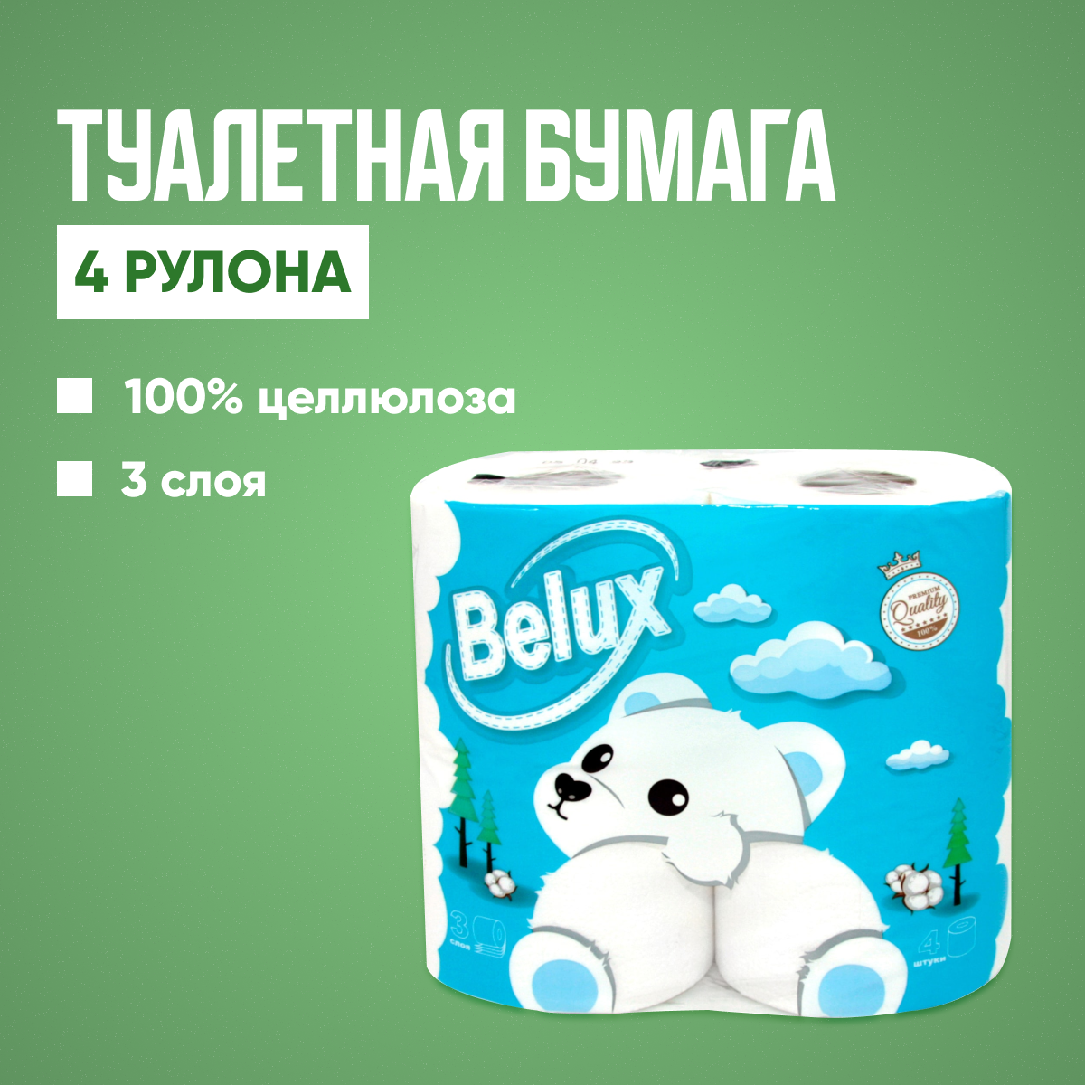 Отзывы на Туалетная бумага “Belux Premium” 3-х слойная, 4 рулона. 100% целлюлоза.