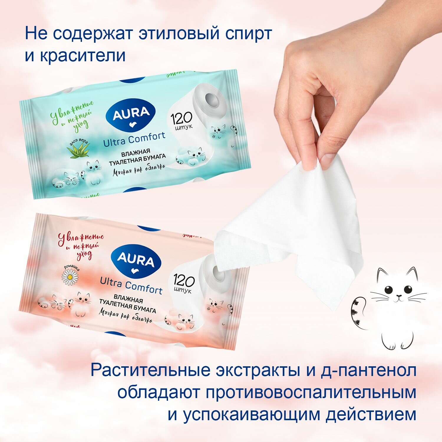 10 цен на Влажная туалетная бумага алоэ и ромашка 720 шт (120 шт х 6), AURA ULTRA COMFORT
