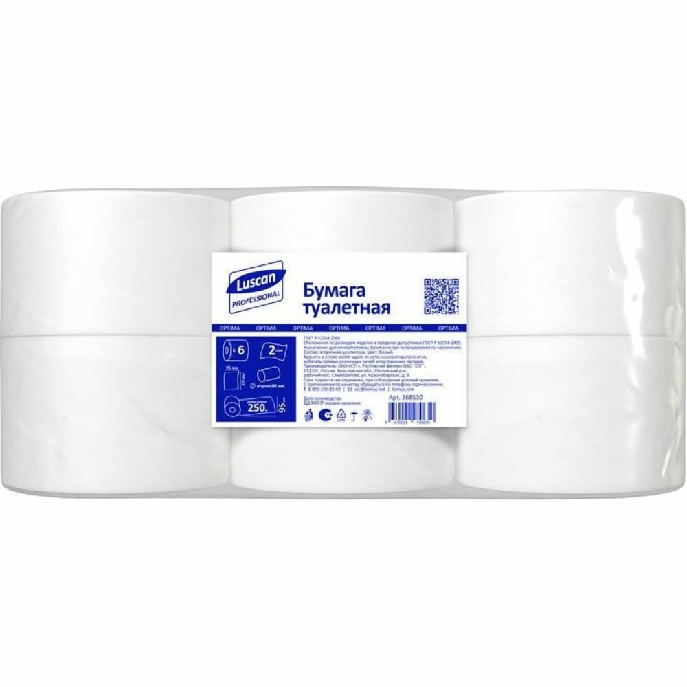 Туалетная бумага Luscan "Professional Etalon", для диспенсеров, 2 слоя, белая, первичная целлюлоза, втулка 250 м, 6 рулонов информация: