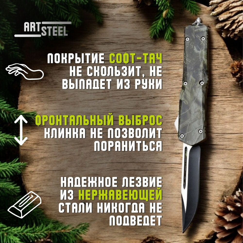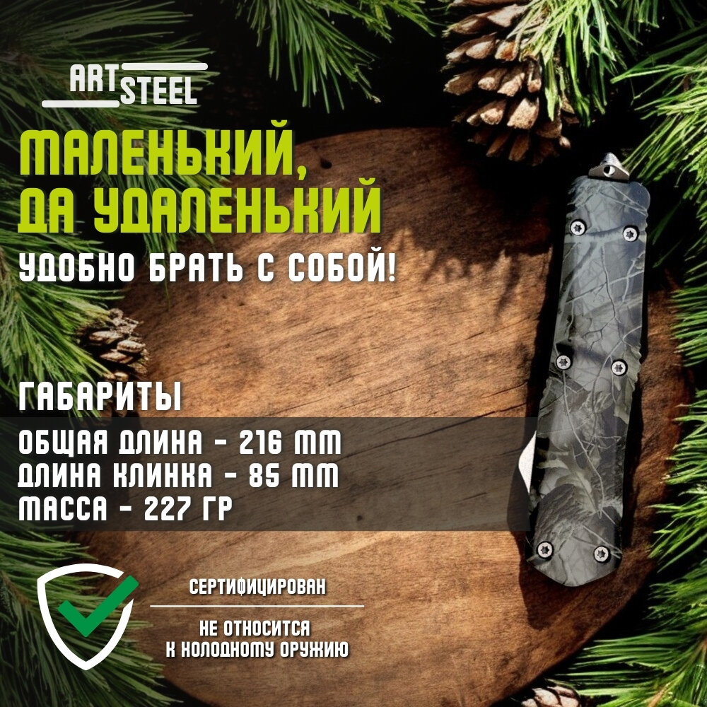 10 цен на Автоматический складной нож Тирекс (фронтальный), ArtSteel, сталь 440, рукоять алюминий, хаки