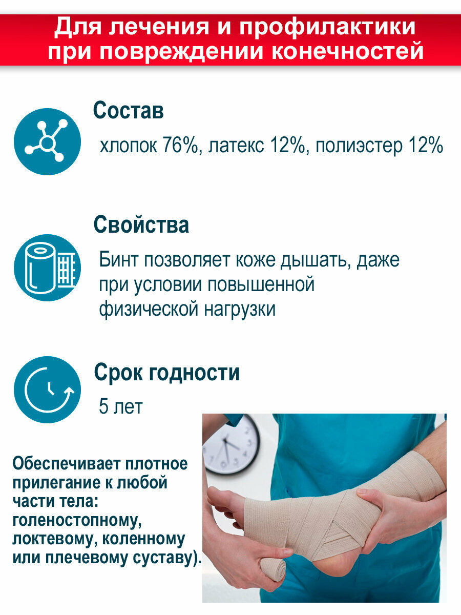 Бинт эластичный бандажный защитный самофиксирующийся, 4,5 м х 5 см, 12 рулонов, бежевый