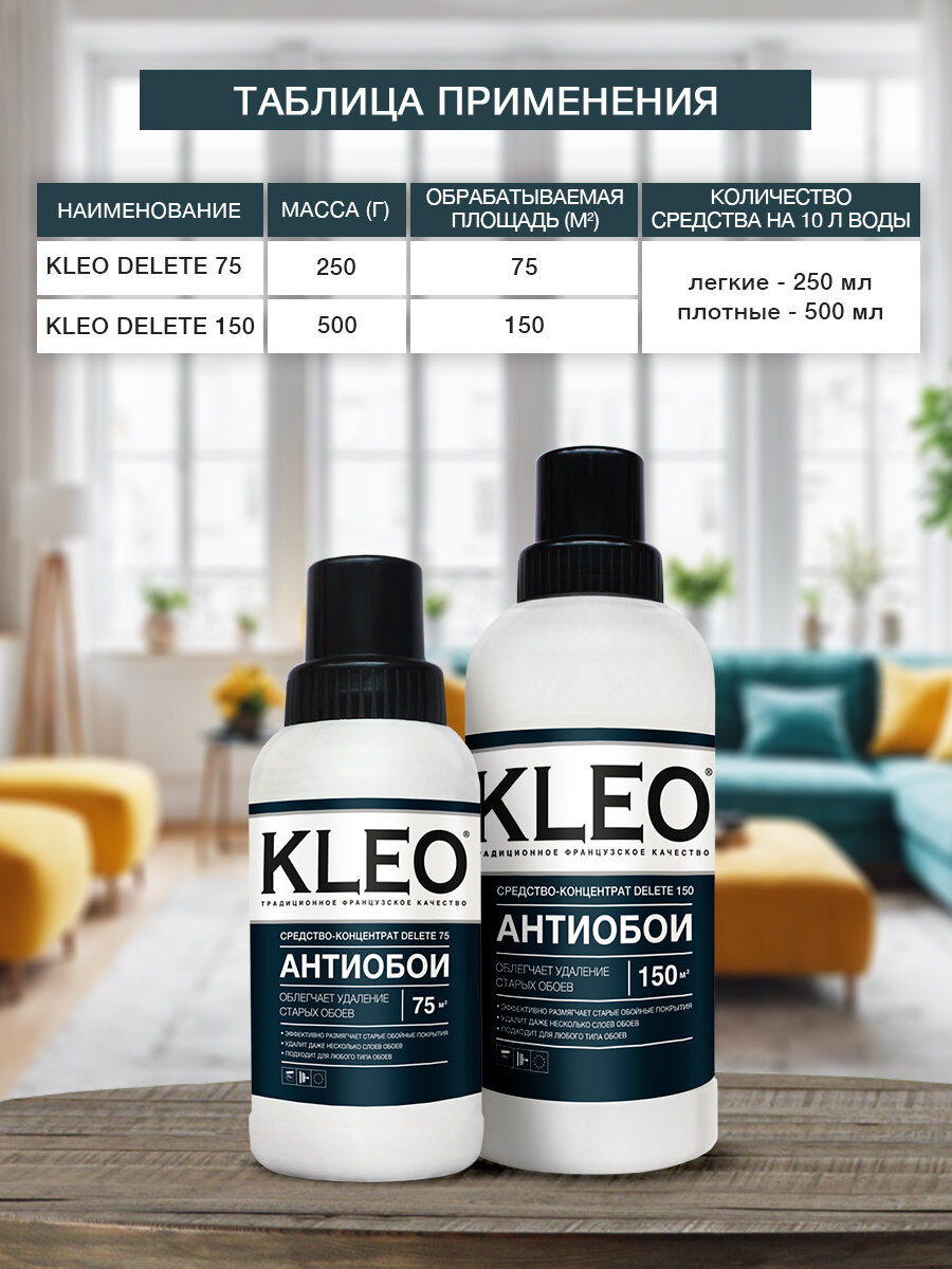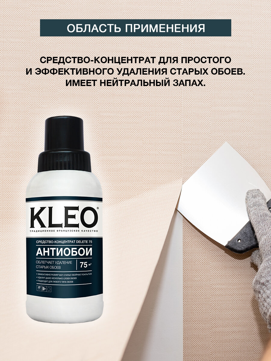 Средство для удаления старых обоев антиобои KLEO DELETE 250мл, 75 кв.м информация: