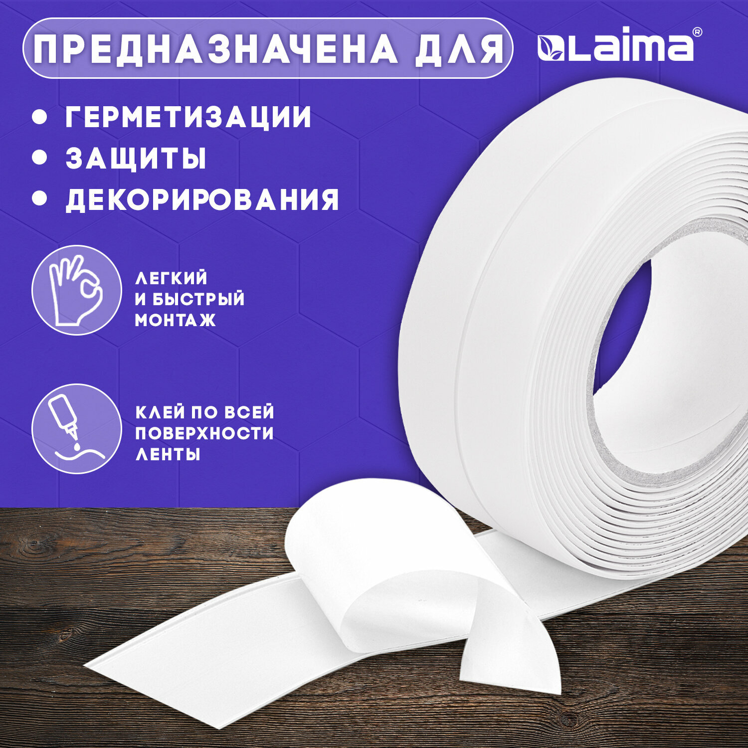 Отзывы на Бордюрная лента для ванны и кухни самоклеящаяся водонепроницаемая белая, 38 мм х 3,35 м, акриловая основа, Laima, 608772