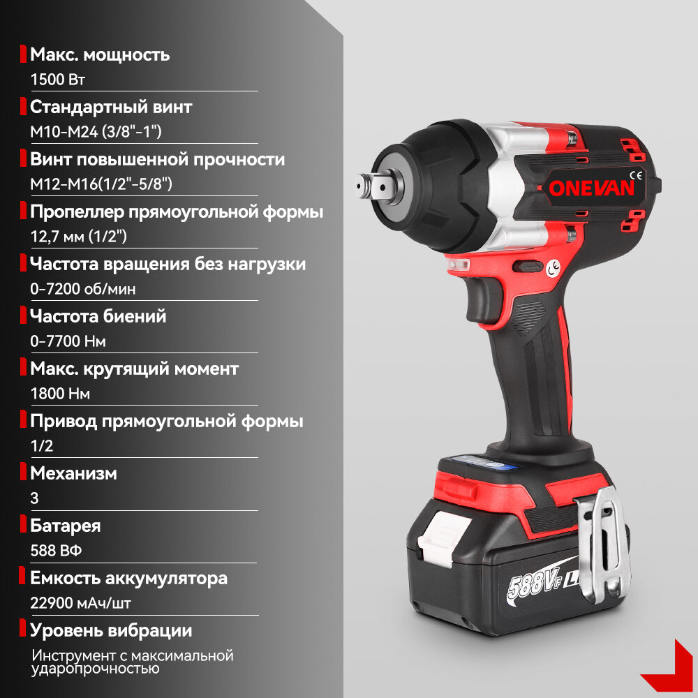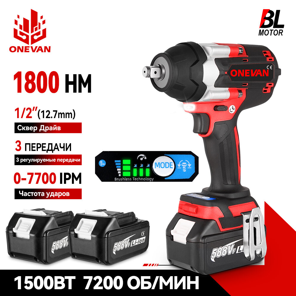 10 цен на Аккумуляторный ударный винтоверт,бесщеточный, 1800 Нм, 1/2 дюйма,21В,2 акб,3А·ч,1500 Вт