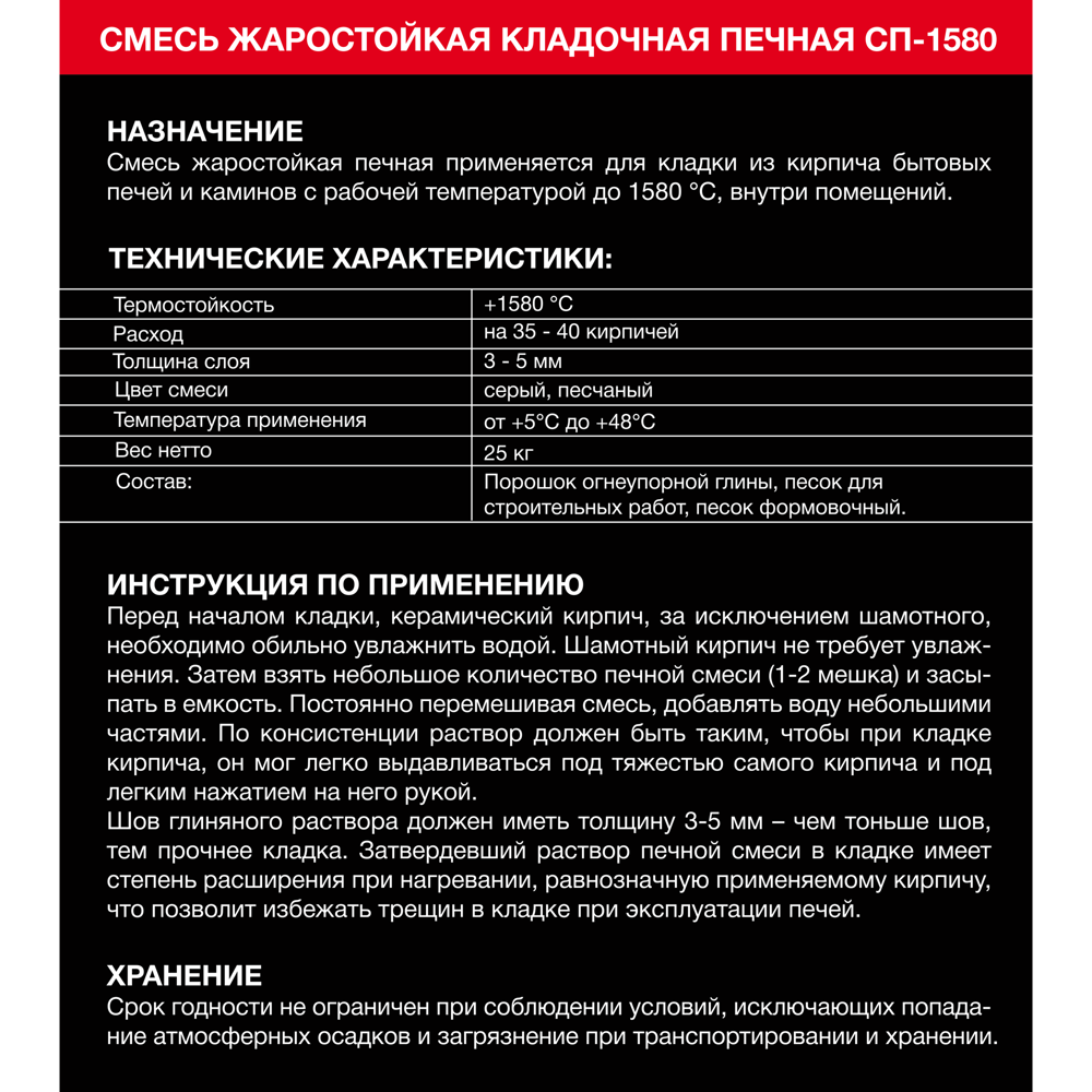 Профикамин СП-1580 смесь печная кладочная (25кг) / профикамин СП-1580 печная смесь жаростойкая кладочная (25кг) информация: