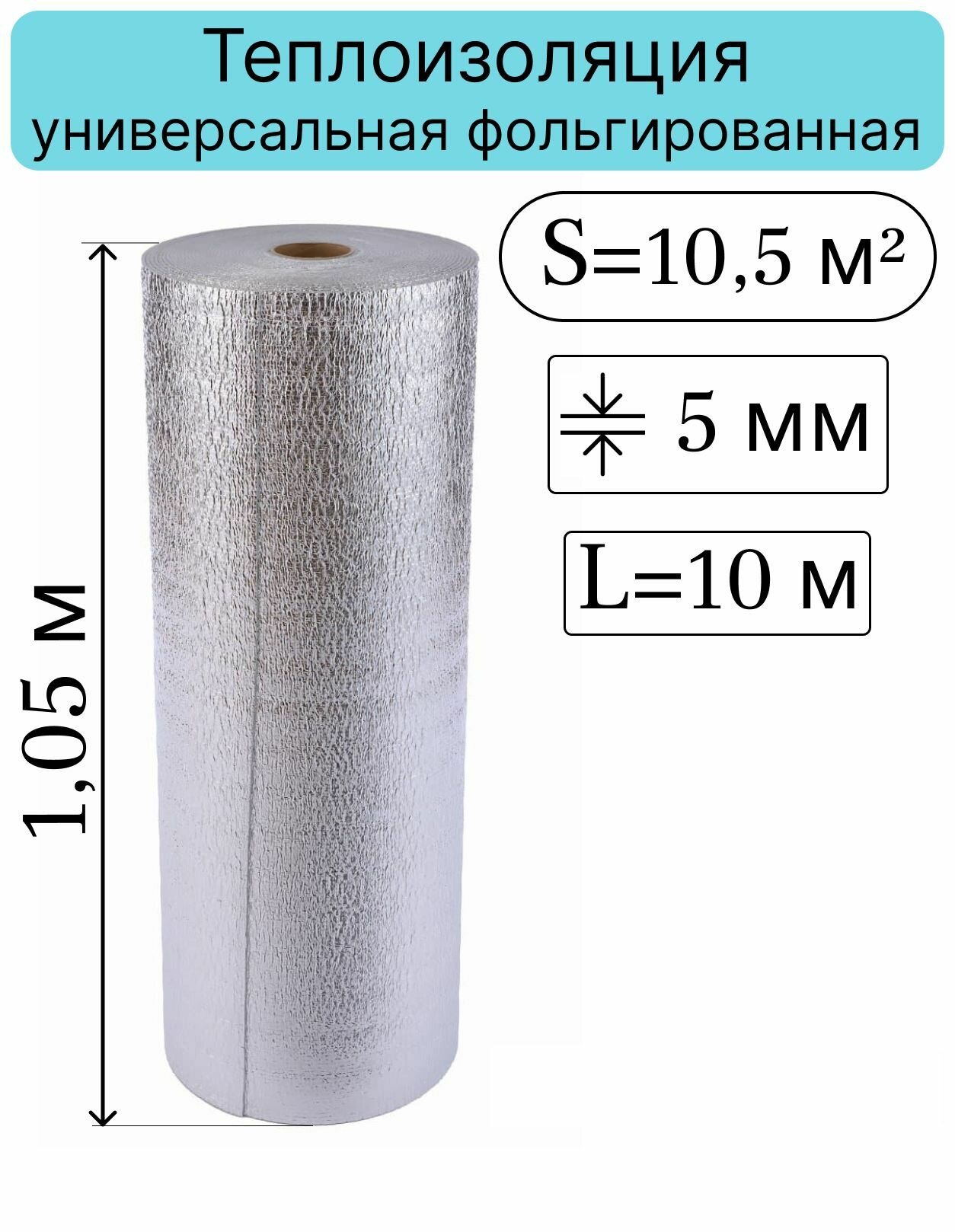 Теплоизоляция звукоизоляция 5 мм 1,05*10 м (10,5 кв.м) НПЭ-05 металл лавсан рулон информация: