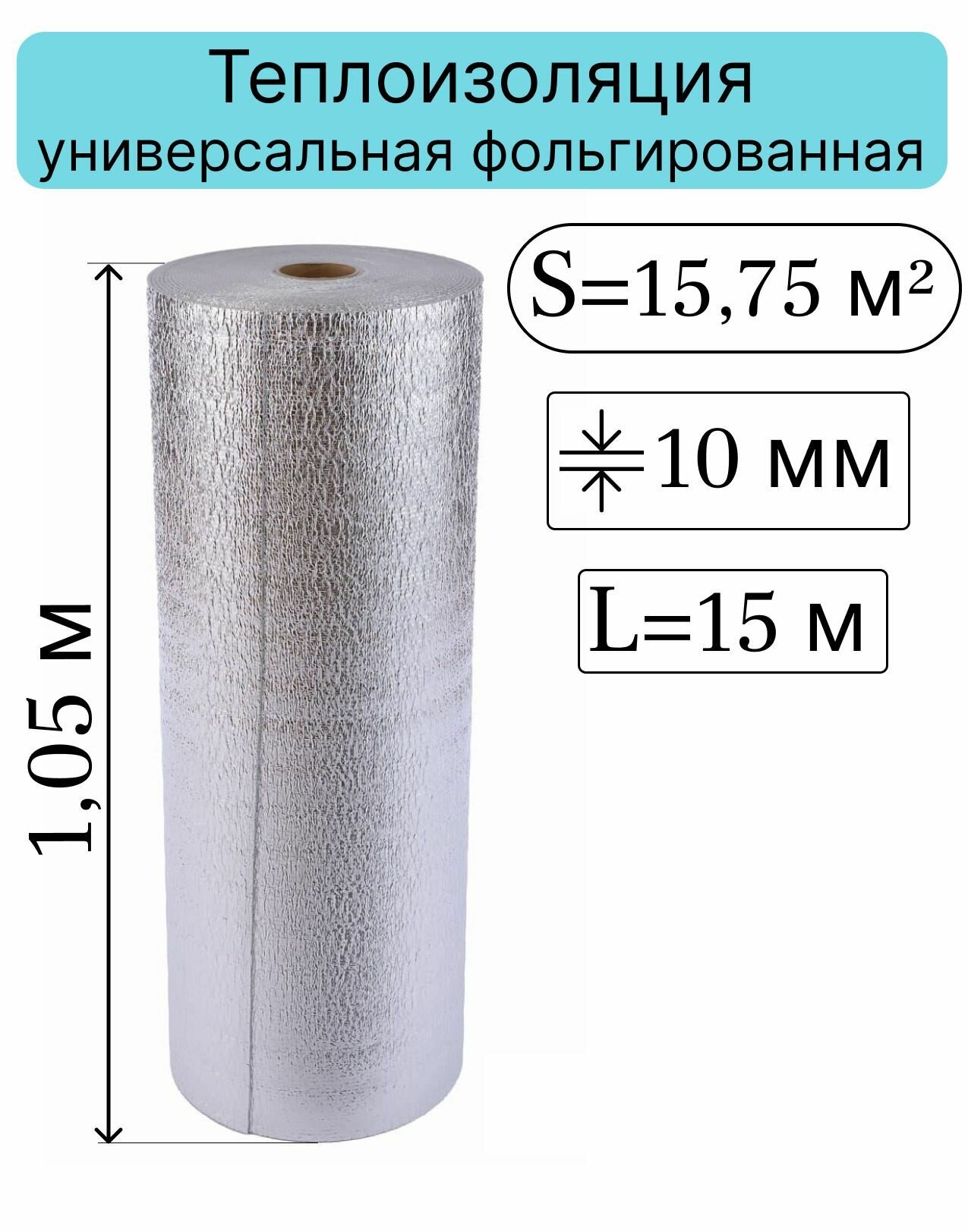10 цен на Теплоизоляция звукоизоляция 10 мм 1,05*15 пог.м (15,75 кв.м) НПЭ-10 металл лавсан рулон