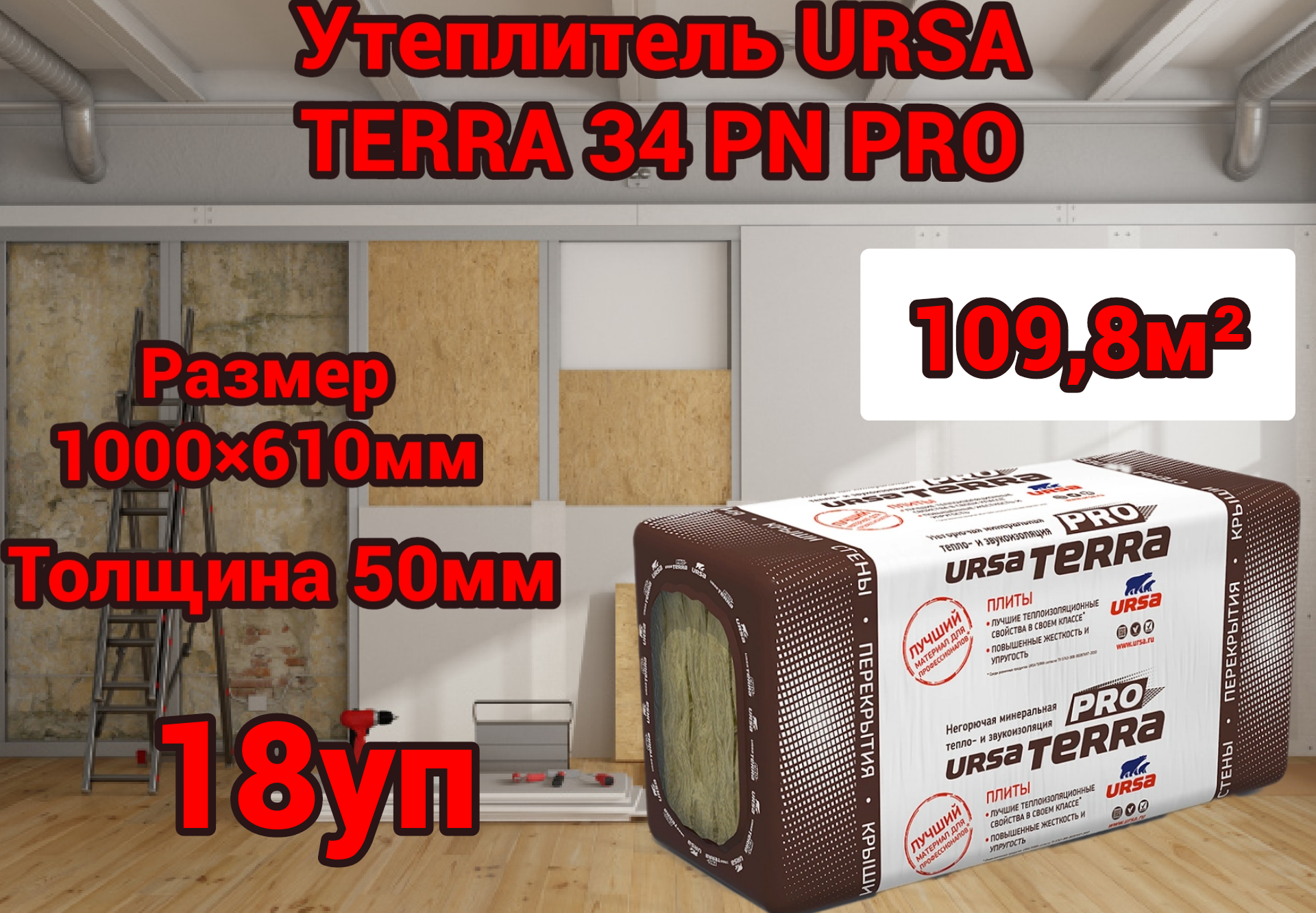 Утеплитель для стен и крыши URSA TERRA 34 PN PRO 50 мм 109,8 м2 информация: