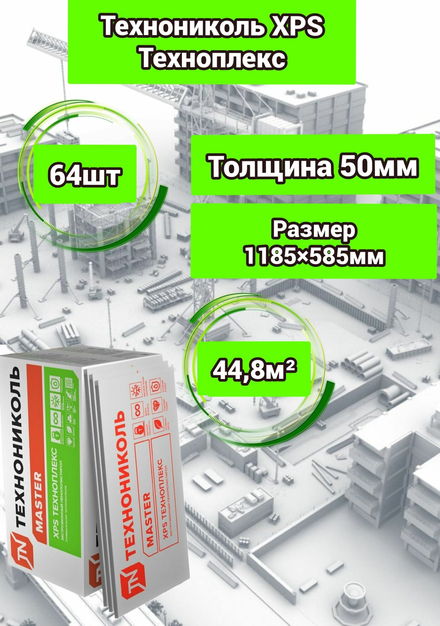 Утеплитель Технониколь Техноплекс 50 мм 64 плиты 44,8м2 из пенополистирола для стен, крыши, пола информация: