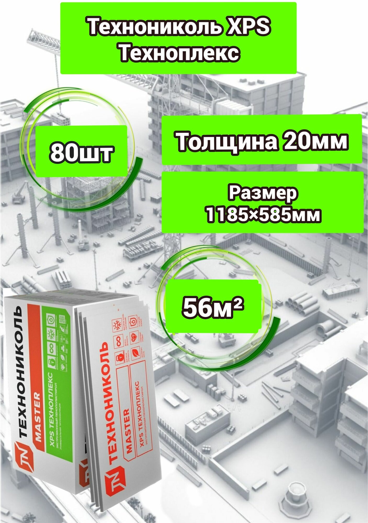 Утеплитель Технониколь Техноплекс 20 мм 80 плит 56м2 из пенополистирола для стен, крыши, пола информация: