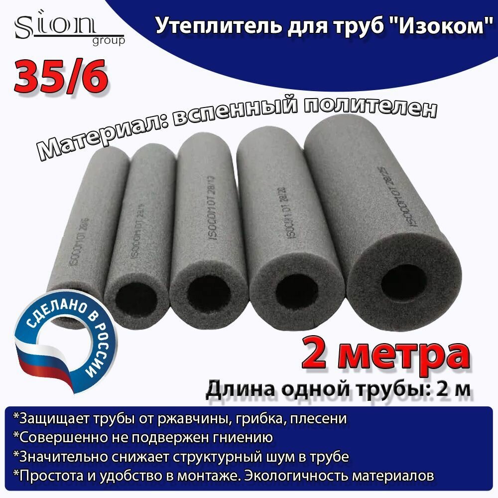 Утеплитель для труб "Изоком" 35/6 (по 2 м)-2м/трубка пенополиэтиленовая изоляционная информация: