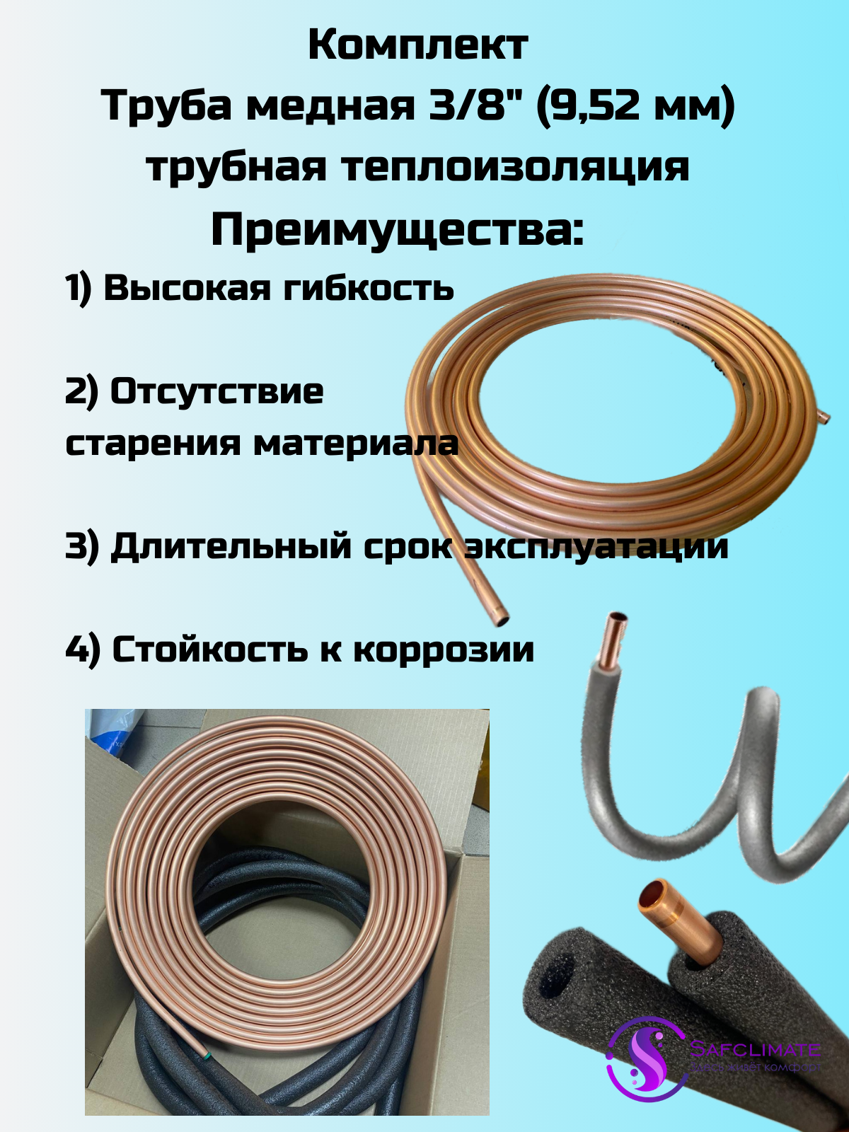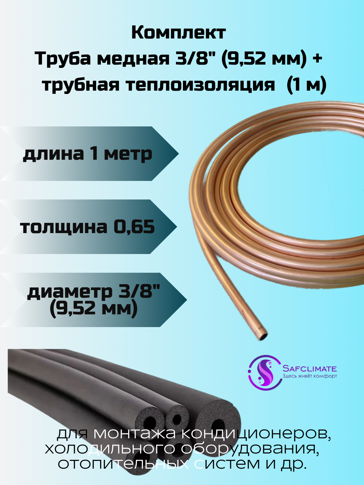 Комплект - Труба медная 3/8 + Трубная теплоизоляция с-10 (1м) информация:
