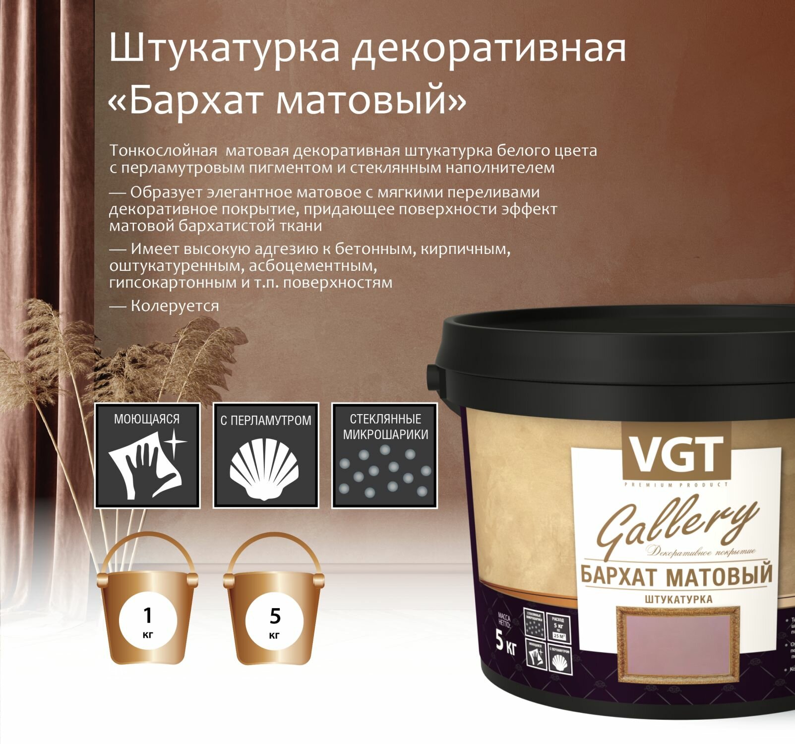 VGT GALLERY бархат штукатурка декоративная, матовая (5кг)