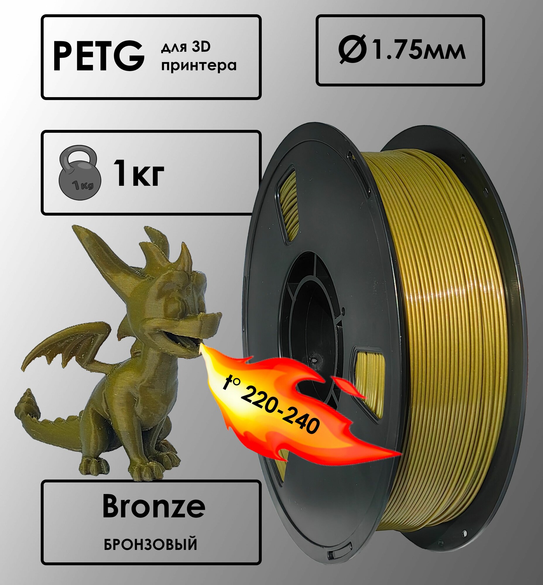 PETG Bronze Цвет Бронзовый Пластик для 3D-принтера информация: