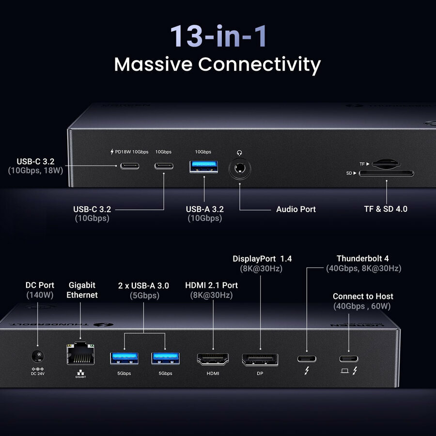 Док-станция UGREEN U709 (25085EU) Revodok Max 13-in-1 8K@30Hz Dock Station информация: