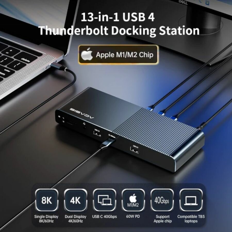 Отзывы на Док-станция 13-в-1 Acasis DS-9002 Thunderbolt 4 USB-C Pro с тремя портами 40 Гбит/с, 8K, PD 60 Вт