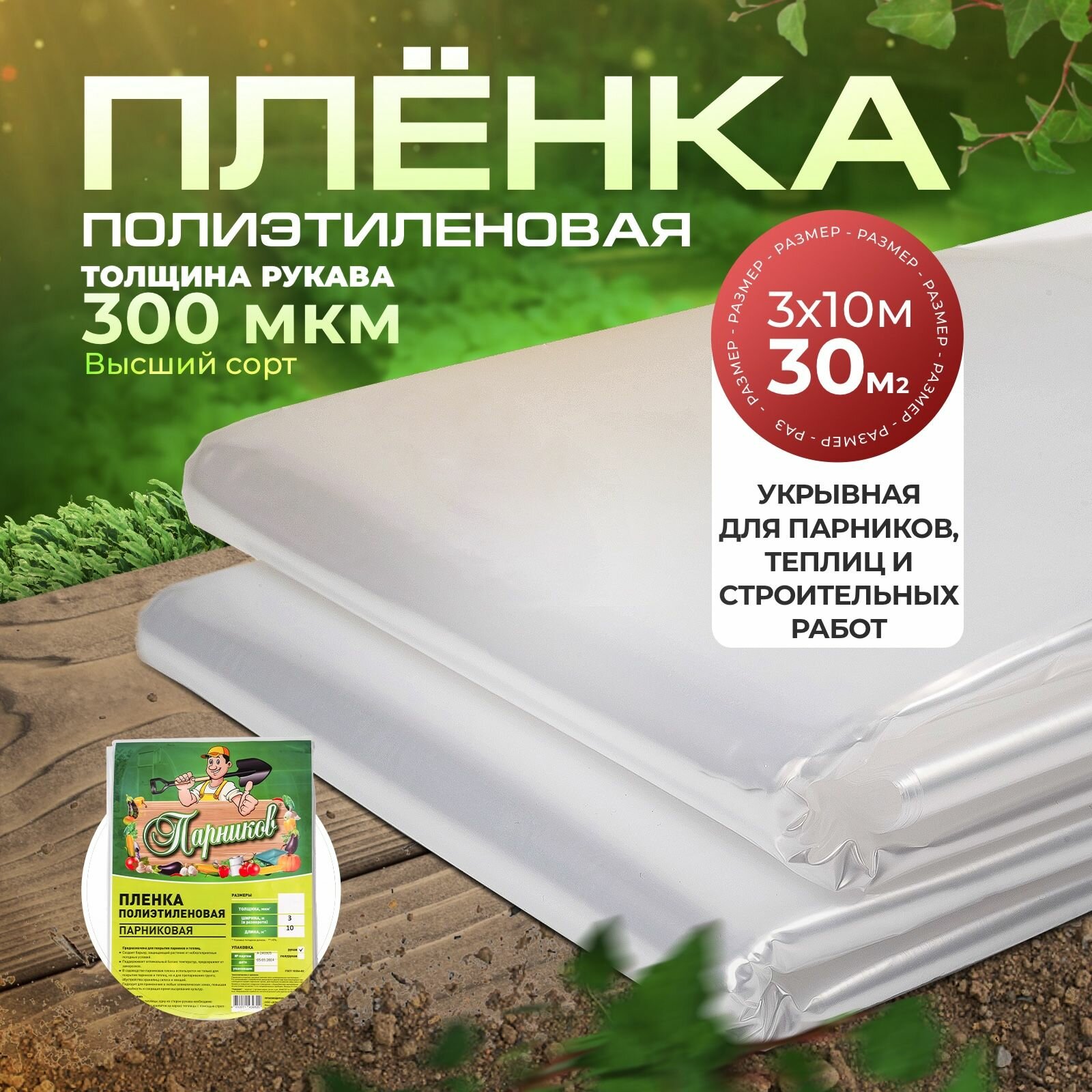 10 цен на Пленка укрывная для ремонта, теплиц, парников, мебели, строительная, полиэтиленовая прозрачная Высший сорт 300 мкм, 3м х 10м Парников