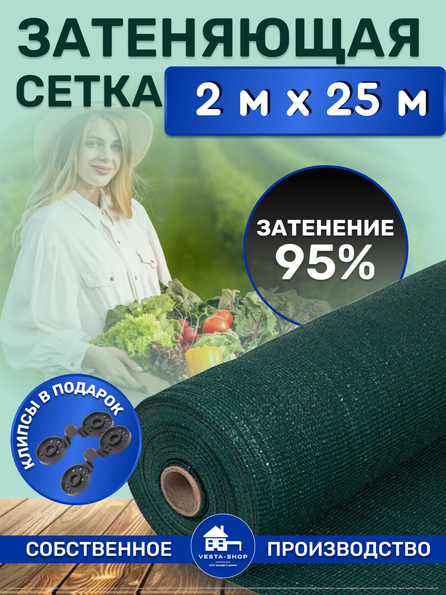 Сетка затеняющая зеленая, затенение 95%, размер 2х25м информация: