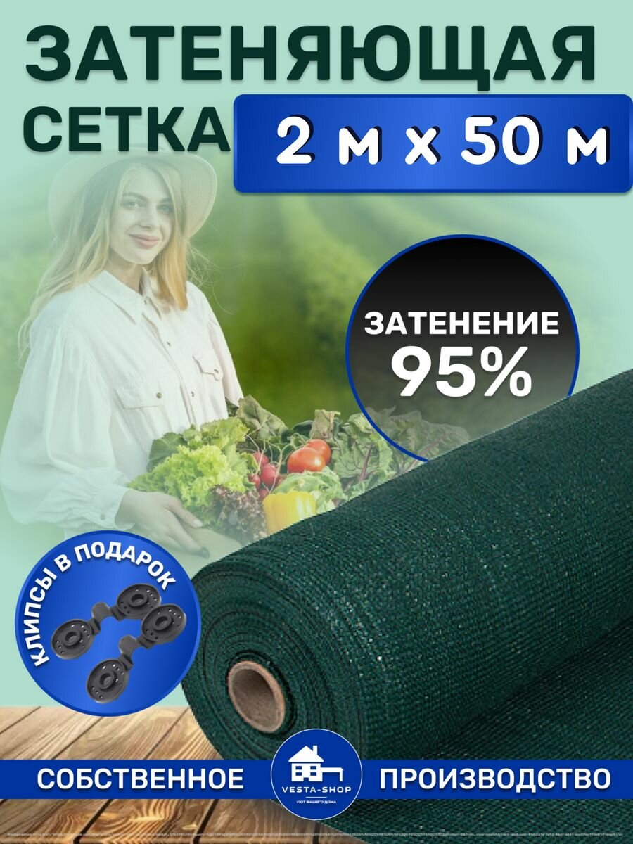 10 цен на Сетка затеняющая зеленая, затенение 95%, размер 2х50м