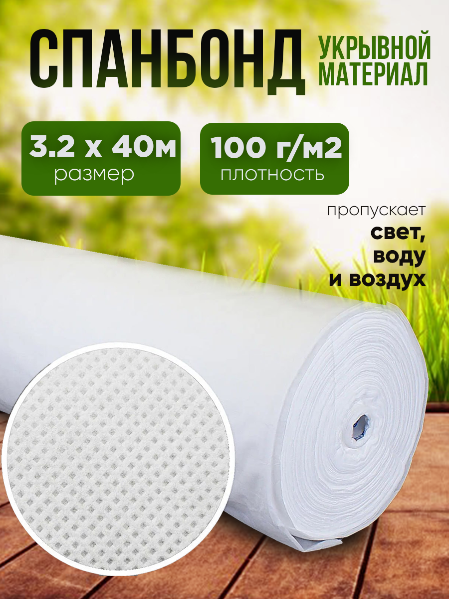 Спанбонд укрывной материал для растений плотность 100г/м2, размер 3,2х40м, белый информация: