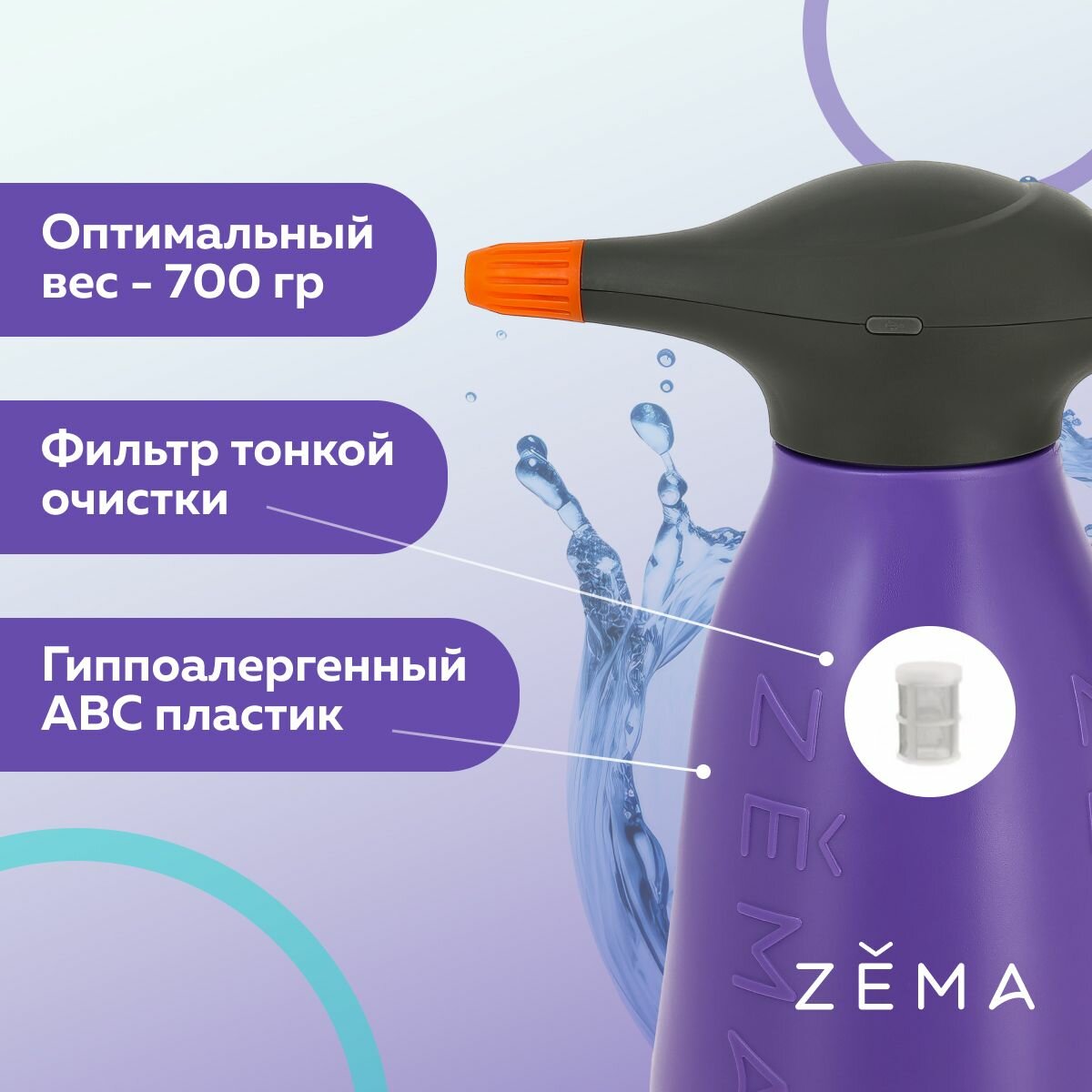 | Подробная комплектация | Опрыскиватель аккумуляторный "Zema" ZF2-L 2л, Распылилитель, Ёмкость, Фильтр, Инструкция, Кабель USB Type-C |