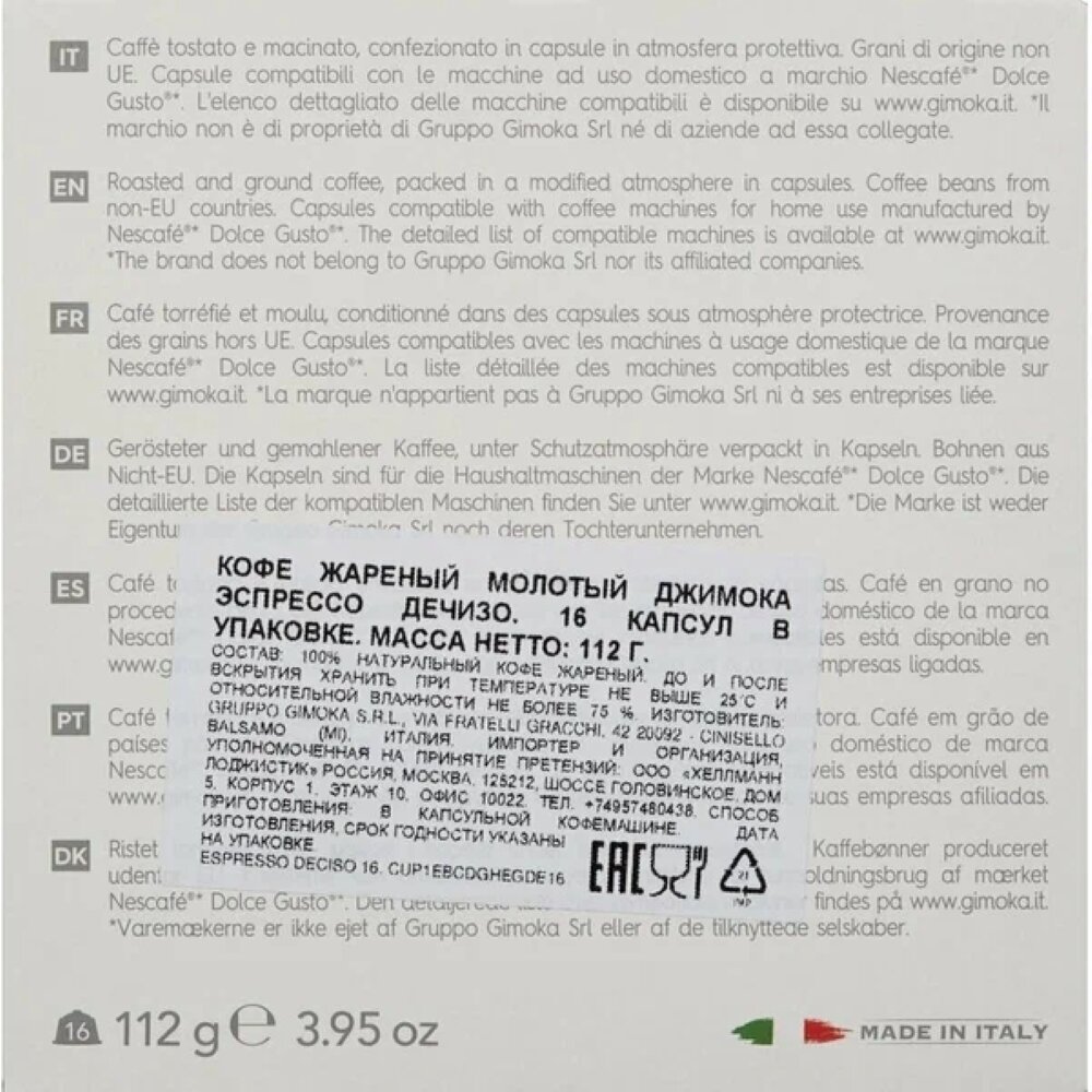 Кофе в капсулах Dolce Gusto Gimoka Deciso 48 шт информация: