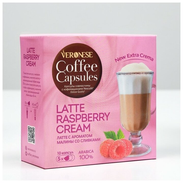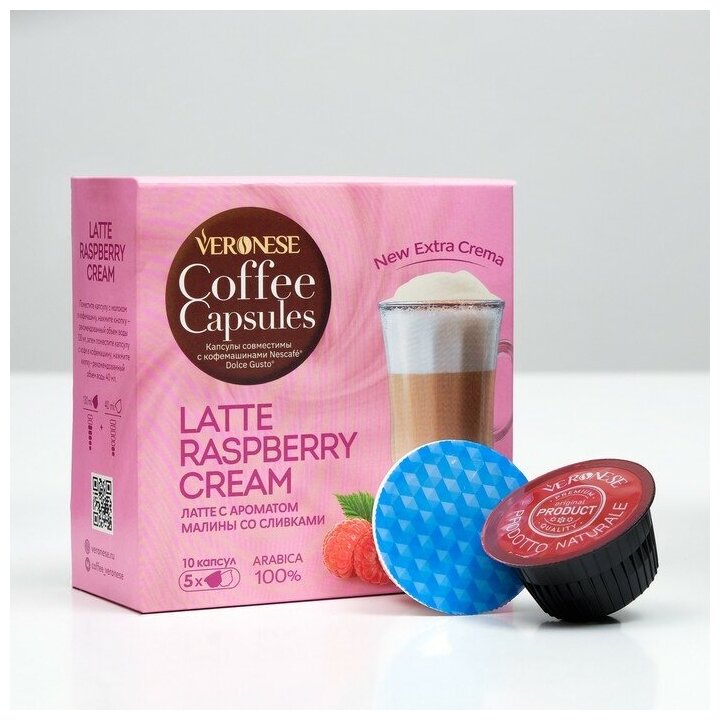 Кофе в капсулах Veronese LATTE RASPBERRY CREAM (Малиновые сливки) для системы Nescafe Dolce Gusto, 10 капсул информация: